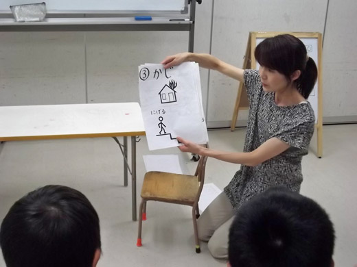 9月~10月にかけて、全曜日対象で防災訓練を行いました。 訓練へのご参加・ご協力をいただきましてありがとうございました。防災訓練に、ドキドキしたお子さんもいらっしゃいましたが、皆さん、 「お・か・し・も」を守って、避難することができていました。 以前は、防災頭巾がかぶれなかったお子さんが、抵抗なくかぶれるようになったり、走っていたお子さんが、静かに歩いて避難できるようになったりする様子から、積み重ねの大切さを実感することができました。