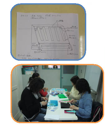 のぞみ発達クリニックでの1コマです。 学齢児グループのお子さん方が指導を受けている間に、別室でお母さま方が集まって、コミュニケーションのためのカード(PECS)を作成しています。